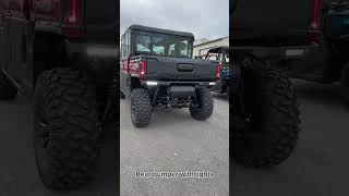 - Electronic power steering, Bosch® EFI, electronic throttle with work/normal modes, OmniDrive™ CVT, 4500 lb. winch with synthetic rope, two 3-person bench seats, CFMOTO LED™ headlights/taillights with backup lights, tilt steering wheel, CFMOTO RideSync app compatible (T-Box), 12V outlet, USB port, push button shifting and starting, nfc key, 8" CFMOTO RideSync touchscreen display, electronic / hydraulic tilt bed, skid plate, front & rear sway bars, Hill Descent Control, locking front and rear differential, side rear view mirrors, roof with headliner, bus bar, 2" receiver, adjustable driver seat, audio package, power glass tip out windshield with wiper, sliding rear glass window, full locking doors with power glass windows, factory installed HVAC, 150amp charging system